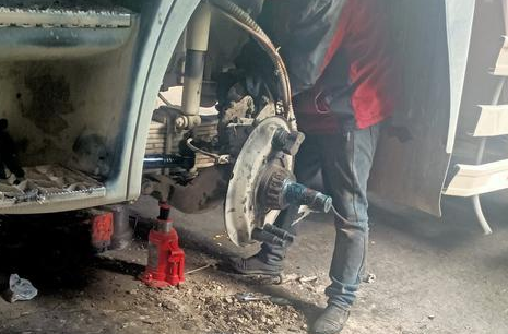 渣土車一般走洗車槽比較多 ,太久不做保養的話容易進水 ,前輪進水會導致黃油 變質 ,黃油變質后軸承容易磨損 。太久不處理的話 ,軸承發熱 燒壞 導致前輪脫落危險。